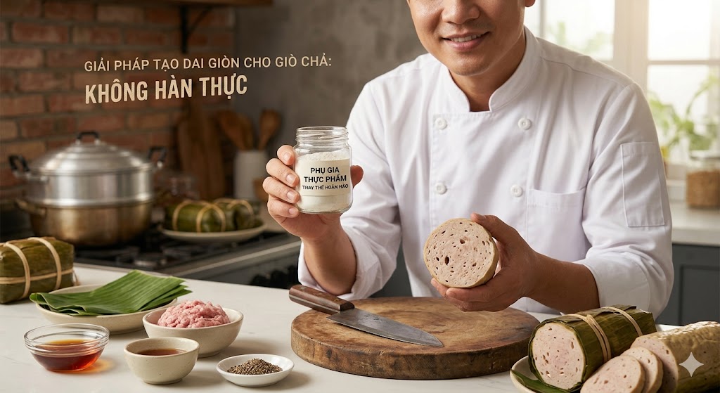 Bí quyết tạo dai giòn cho giò chả: Phụ gia nào thay thế hoàn hảo cho hàn thực.